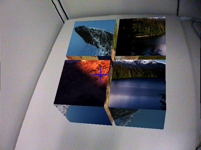 Screenshot from AR Pad Unit: Again, the augmented reality puzzle and the other user are in view. |